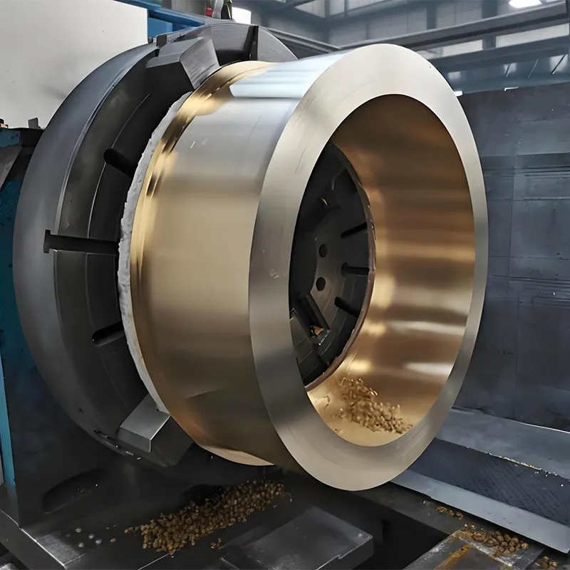Em aplicações práticas, grandes buchas de bronze-estanho são produtos representativos típicos de fundição centrífuga. Esse tipo de peça é amplamente utilizado na indústria mecânica, com excelente resistência ao desgaste e características autolubrificantes, frequentemente utilizadas na fabricação de buchas, rolamentos, engrenagens e outras peças resistentes ao desgaste.
